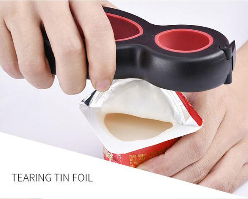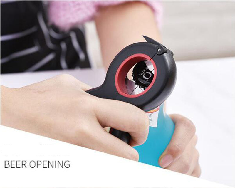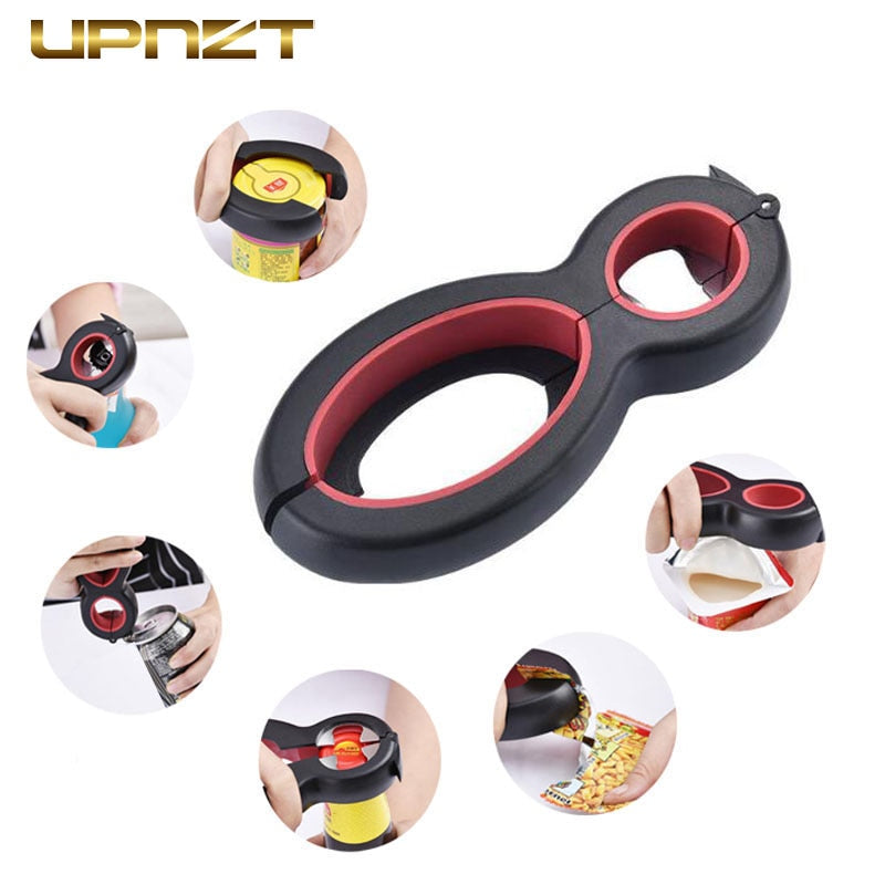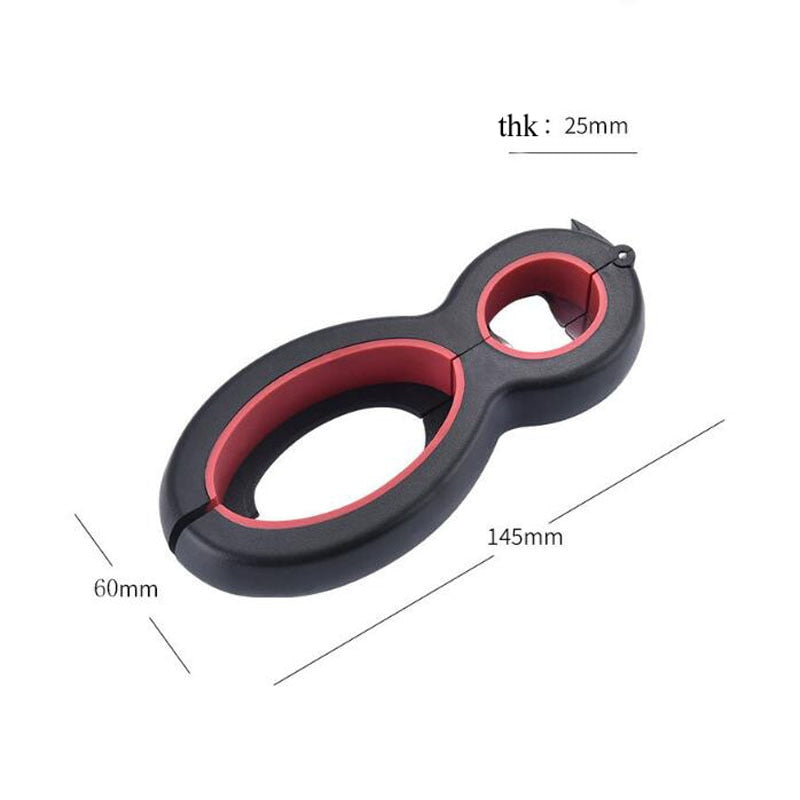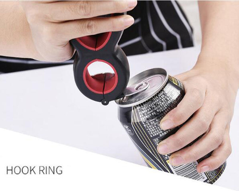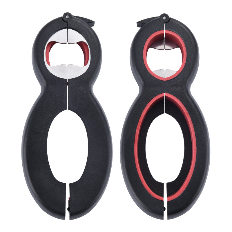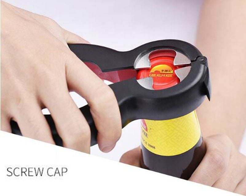 Our 6-in-1 Multi Jar Bottle Can Opener is a great addition to your kitchen. As it opens six different types of seals/lids: bags, safety seals, pull tabs, bottle caps, bottle tops, jar lids.