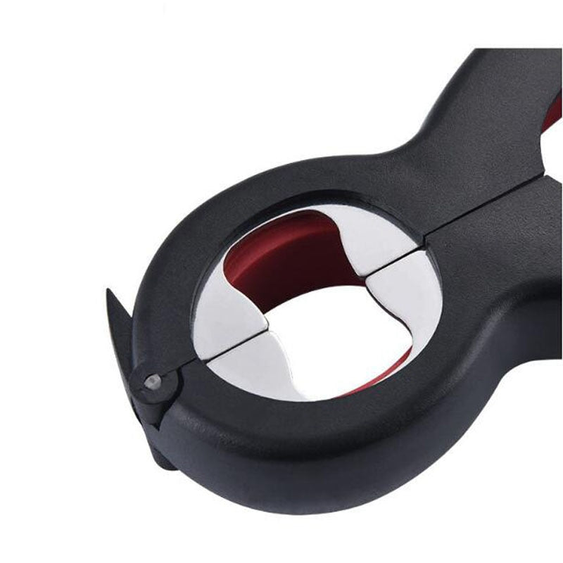 - MULTIFUNCTIONAL: Small circle is best for soda bottle and beer bottles. The large circle is a jar opener. The center section removes safety seal tabs to remove seals. The hook on top pulls open tabs on cans. Our built-in blade is for slicing open sealed bags!