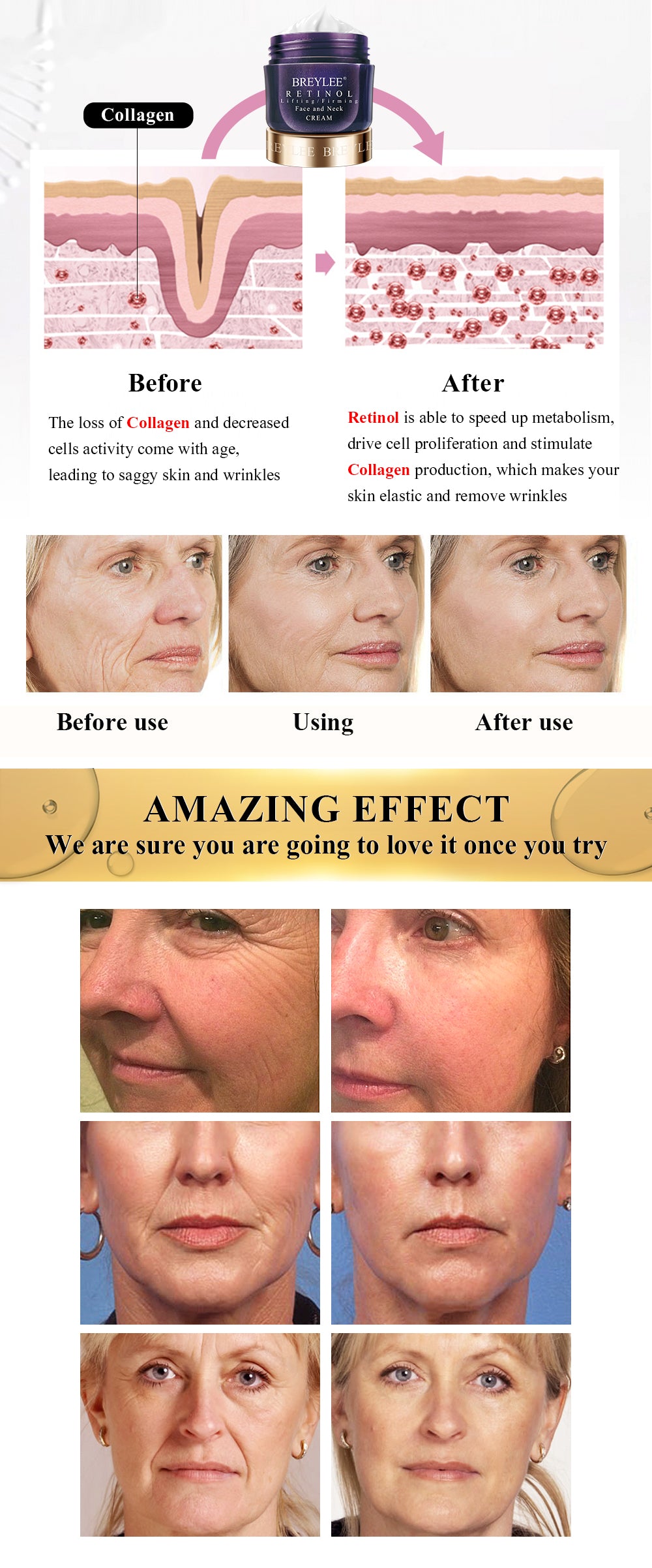 Retinol is able to speed up metabolism, drive cell proliferation and stimulate Collagen production, which makes your skin elastic and remove wrinkles
