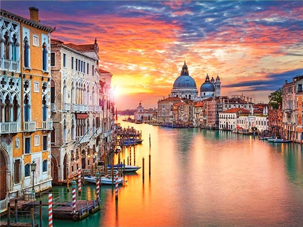 City Lake Sunset- Diamond Painting Kit