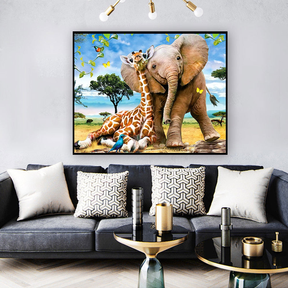 Now bring the painter in you come to life by creating this Elephant Giraffe diamond painting. This is a landscape painting. Comes with beautiful diamonds to complete your masterpiece