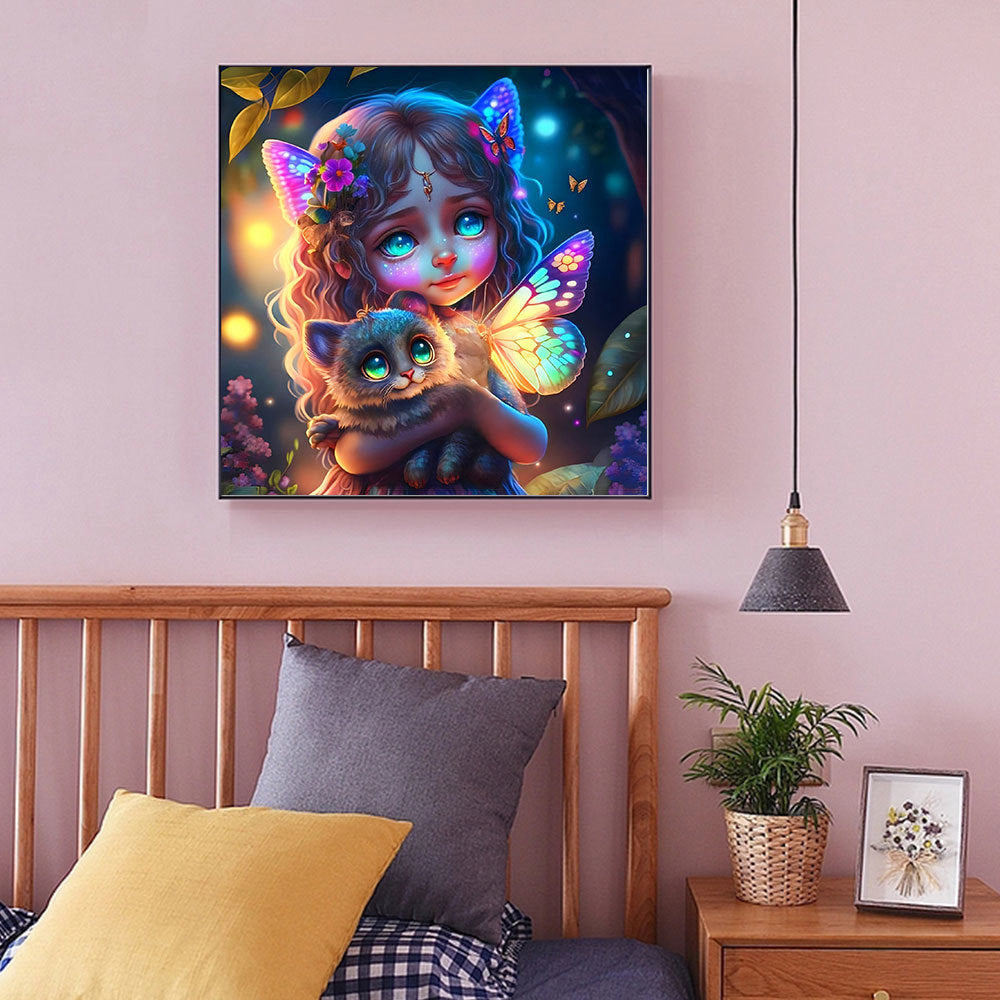 Now bring the painter in you come to life by creating this Girl Cat Butterfly diamond painting. This is a square painting. Comes with beautiful diamonds to complete your masterpiece
