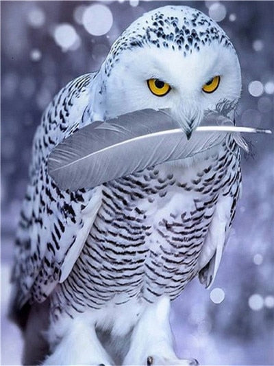 Now bring the painter in you come to life by creating this Owl With Feather diamond painting. This is a portrait painting. Comes with square diamonds to complete your masterpiece