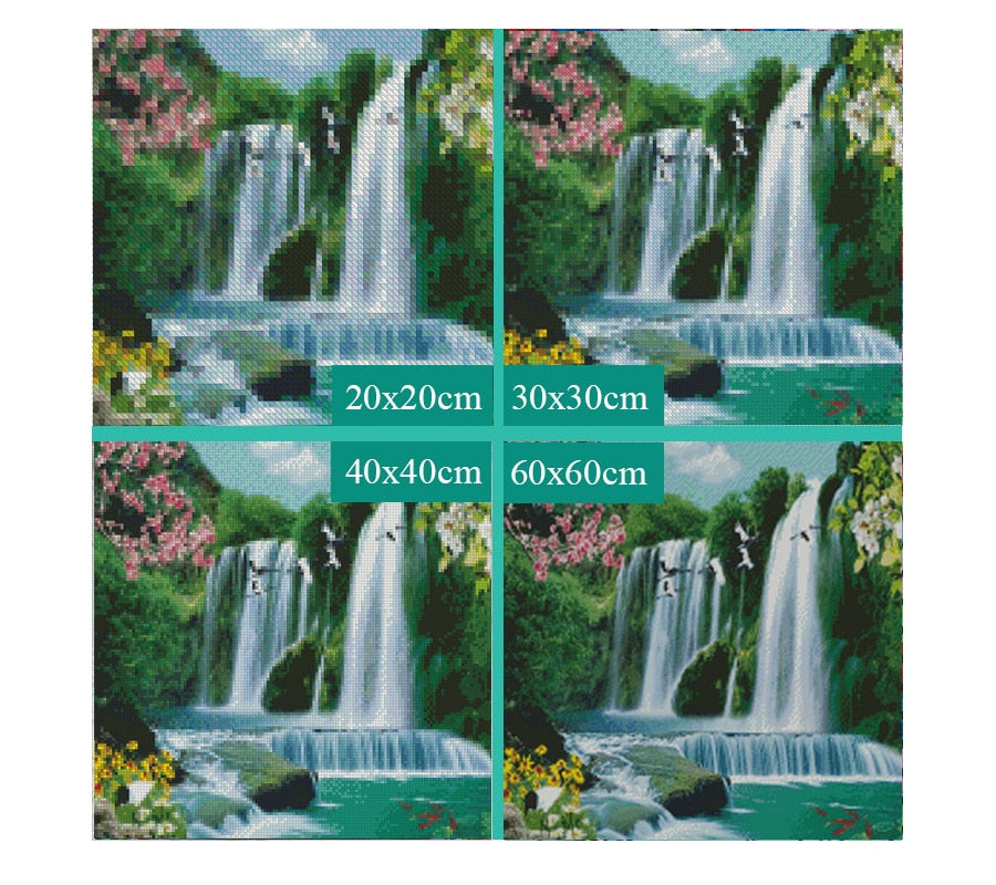 Now bring the painter in you come to life by creating this Waterfall Landscape diamond painting. This is a square canvas painting. It shows a gorgeous waterfall running in the mountains. Comes with square diamonds to complete your masterpiece