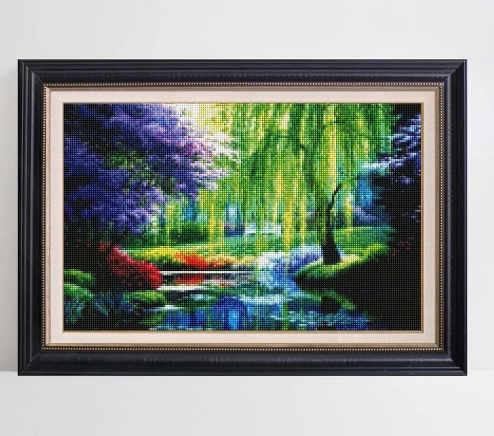 Now bring the painter in you come to life by creating this Willow Tree Garden diamond painting. This is painting depicts gorgeous willow tree besides the lake. Comes with square diamonds to complete your masterpiece