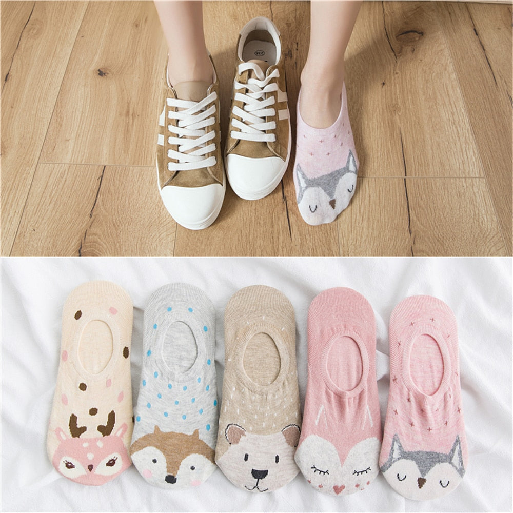 Cartoon Animal Women Ankle Socks (5 Pairs)