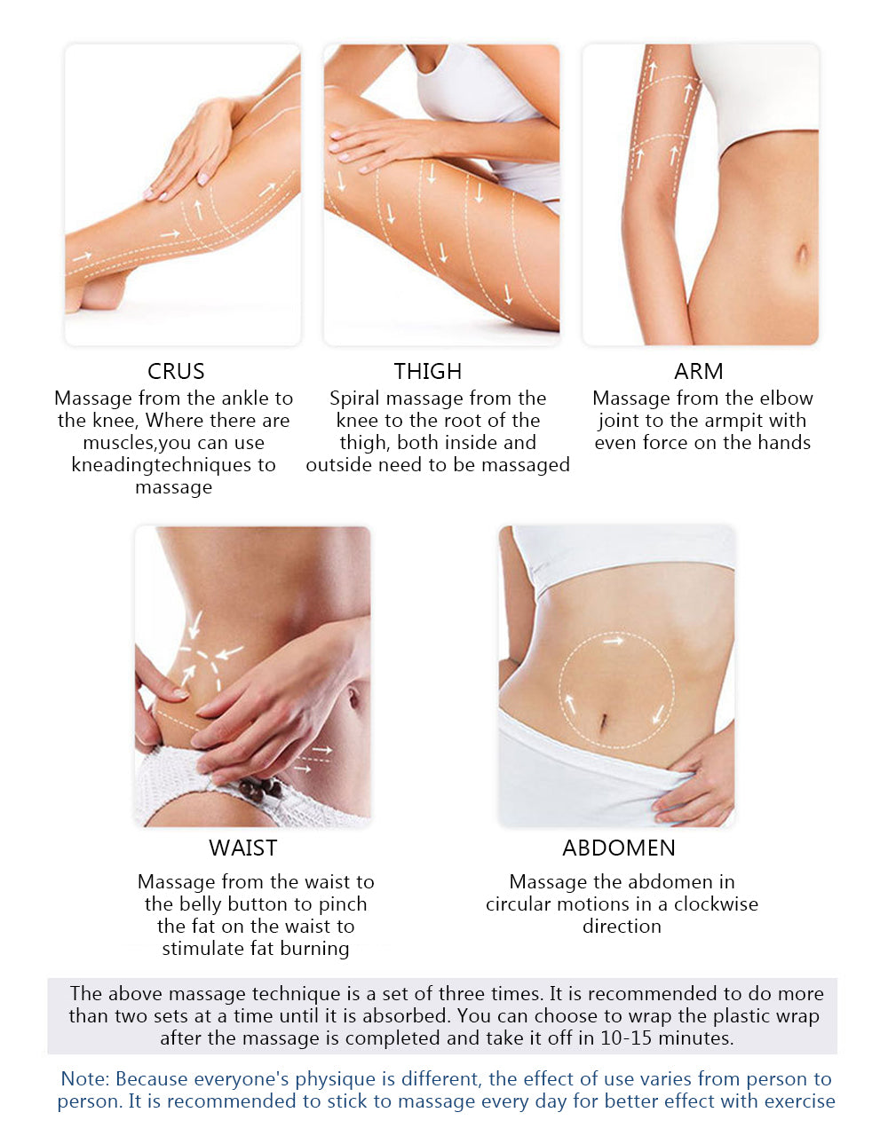 Note: Because everyone's physique is different, the effect of use varies from person to person. It is recommended to stick to massage every day for better effect with exercise