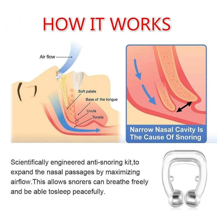 - Anti- snoring device. The new magnetic nose clip is the solution for all snorers! The snore cap facilitates the widening of the nostrils by improving the breathing of the nose. This makes the product very effective for snoring. This can not only reduce snoring, but also promote the circulation of air in the nose and increasing the flowing of air.
