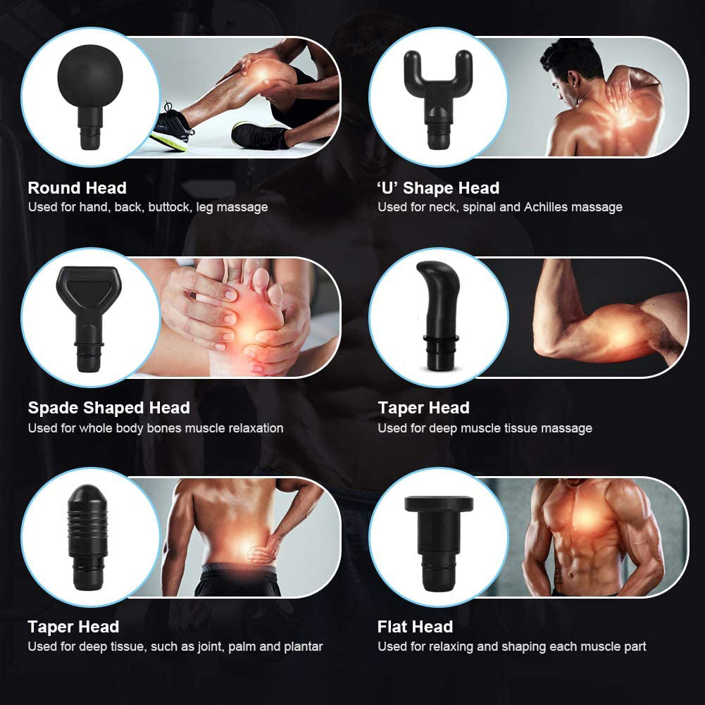 - Taper Head: Used for deep tissue, such as joint, palm and plantar.