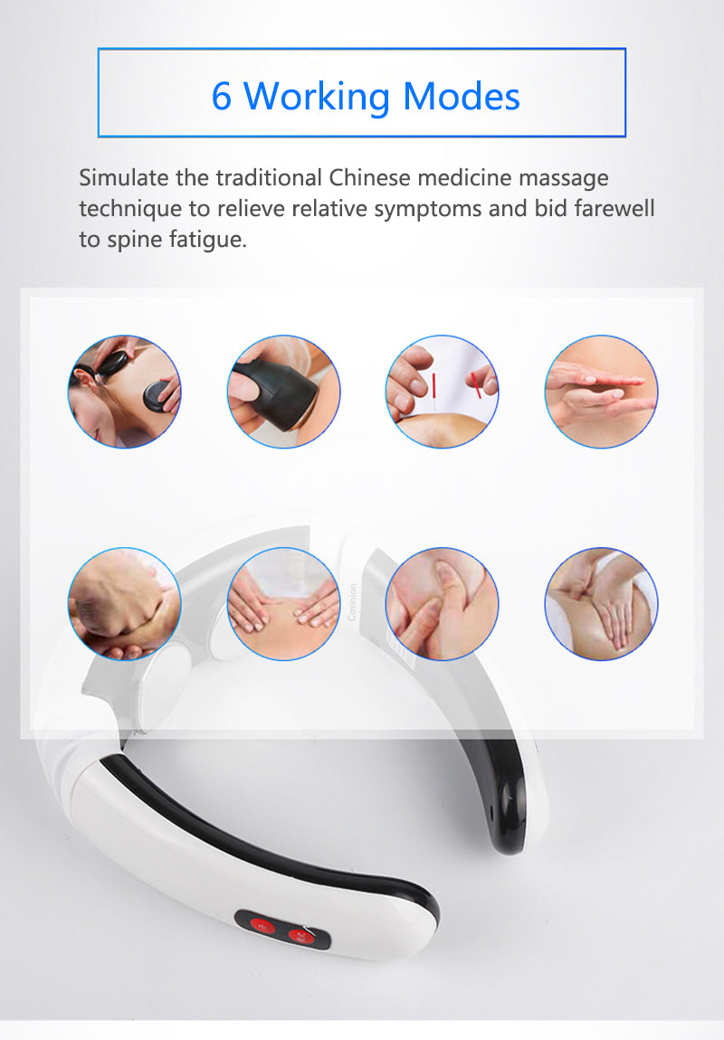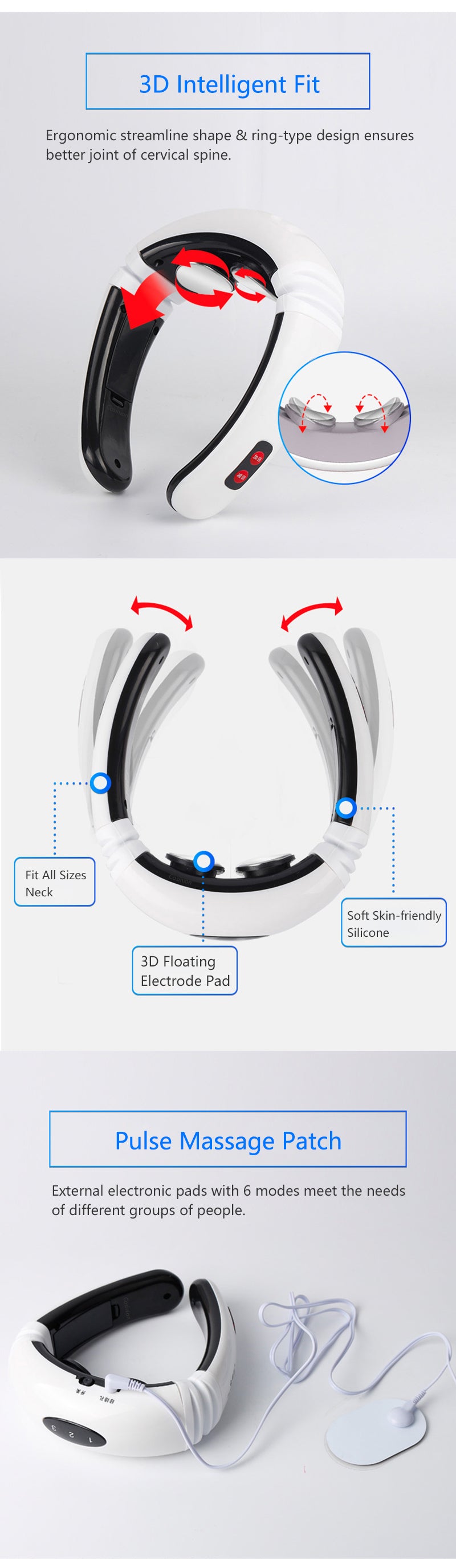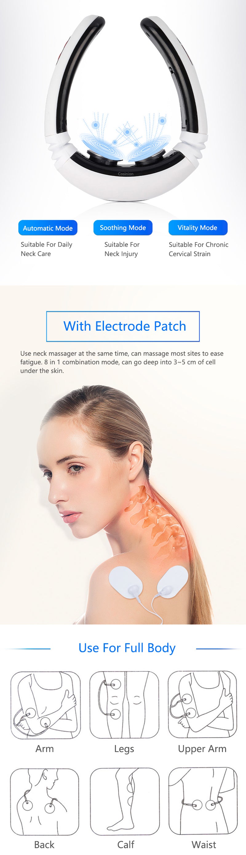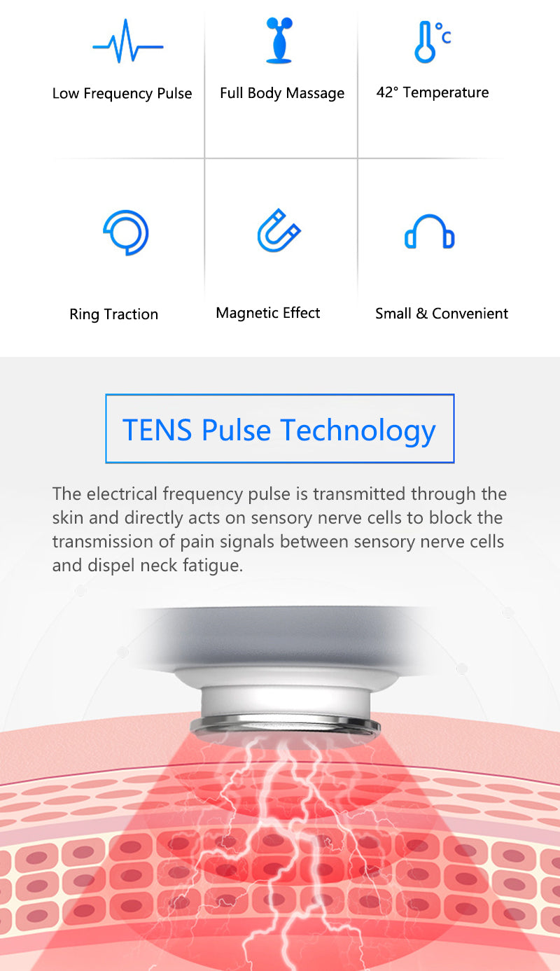 Smart Electric Pulse Neck Massager with the help of pulse electric frequency can simulate real human to help relieve neck soreness, shoulder tiredness, relax tense muscles, body tension, improve sleep quality and promote blood circulation;107.6ºF thermostatic heat let you feel comfortable like using hot compress with a warm towel
