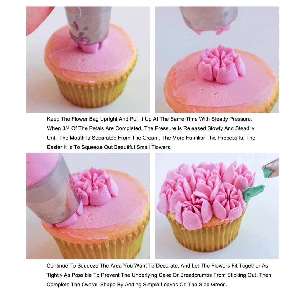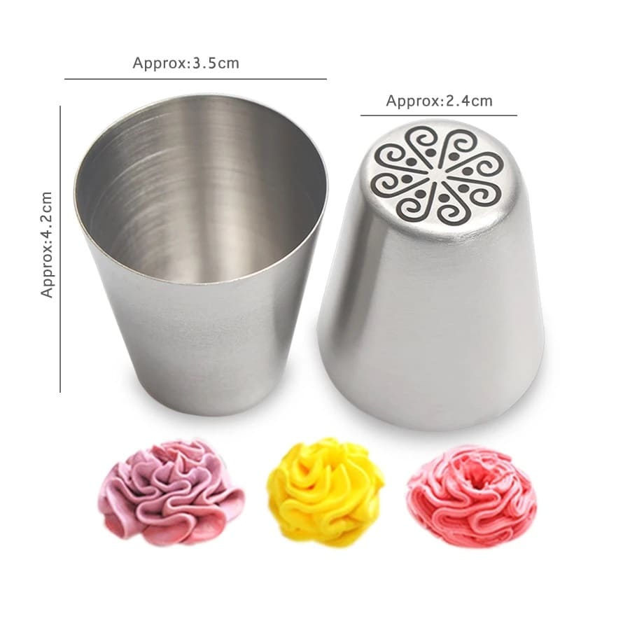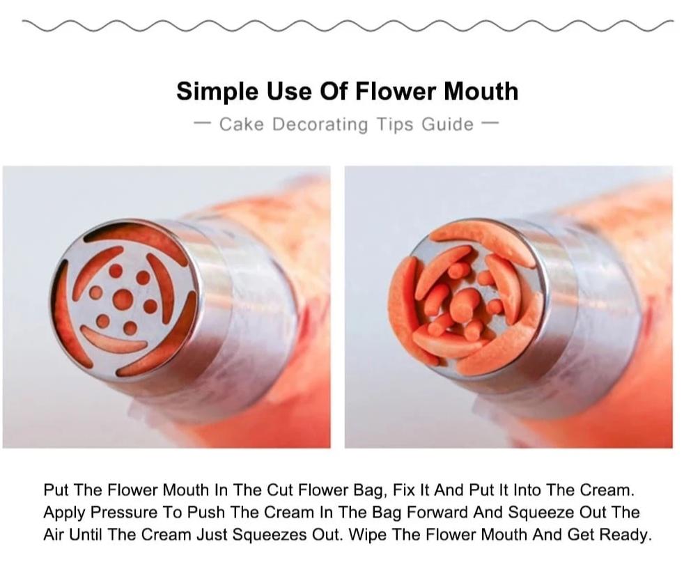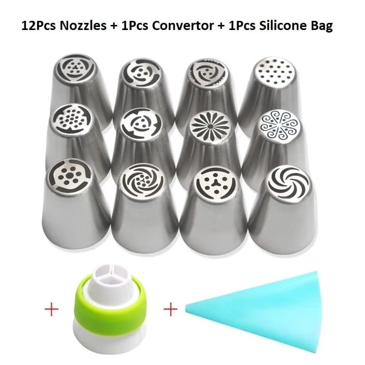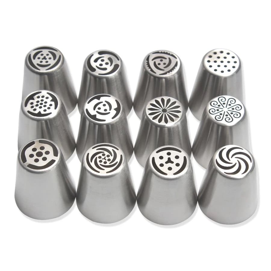 - The set includes 12 piece stainless steel flower nozzle