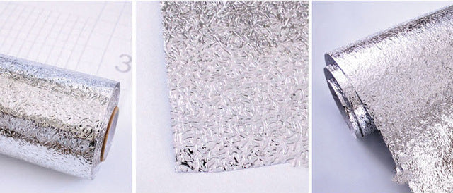 The aluminium foil paper are Waterproof, damp-proof, grease-proof and leak-proof, such a versatile tool. Sticked against wall, under sewer, in cabinet and drawers to keep your home clean and tidy. Good quality and affordable. Can be used for House renovation, renovation of old houses, rental housing, shops, furniture, etc. The back of the wall sticker comes with glue. Waterproof, no fading, no curling, dirty and can be scrubbed. Can be directly attached without lifting the glue.