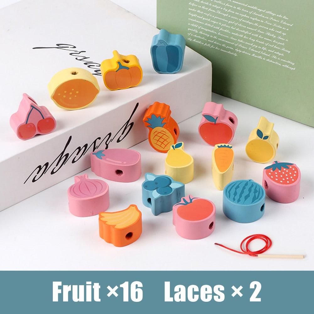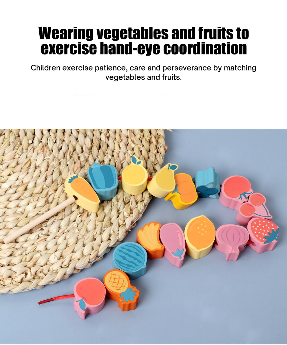 【Montessori Toys for Toddlers 1 2 3 4 Year Old】For 18 month old babies to learn fruits, animals and vegetables. Our wooden stringing toys game provides a fun way for toddler to learn new things. This wooden educational strining toy will keep your kids entertained for hours while learning happily.