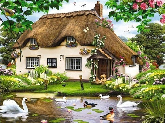 Now bring the painter in you come to life by creating this lake cottage diamond painting. This is a landscape painting. Comes with square diamonds to complete your masterpiece
